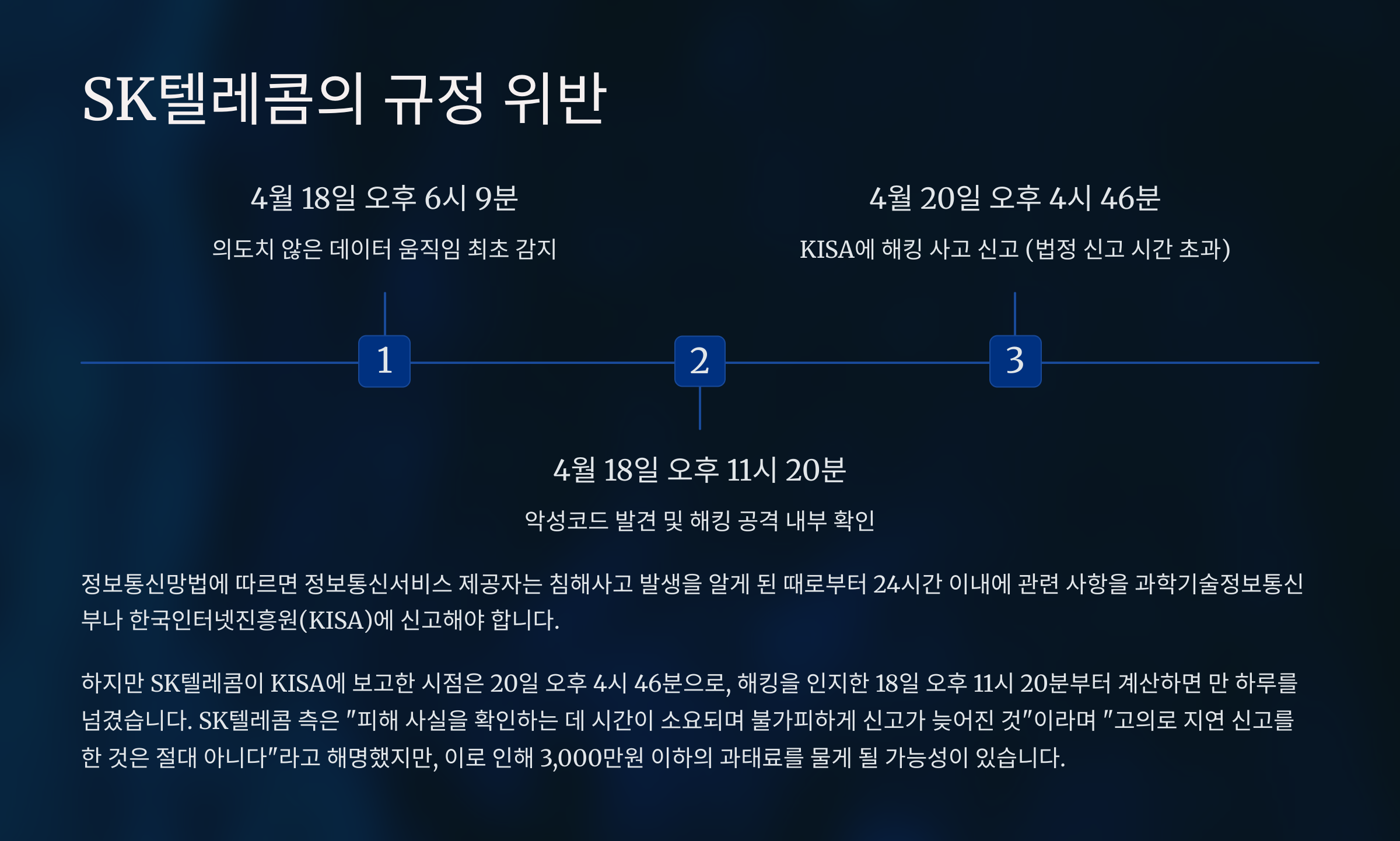 규정 위반: SK텔레콤은 왜 24시간 내 신고 규정을 어겼을까요?