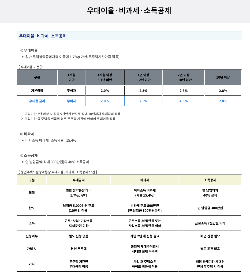 | 기타 | 무주택 기간만 우대금리가 적용되며, 주택 구입 시 일반 금리로 전환 |