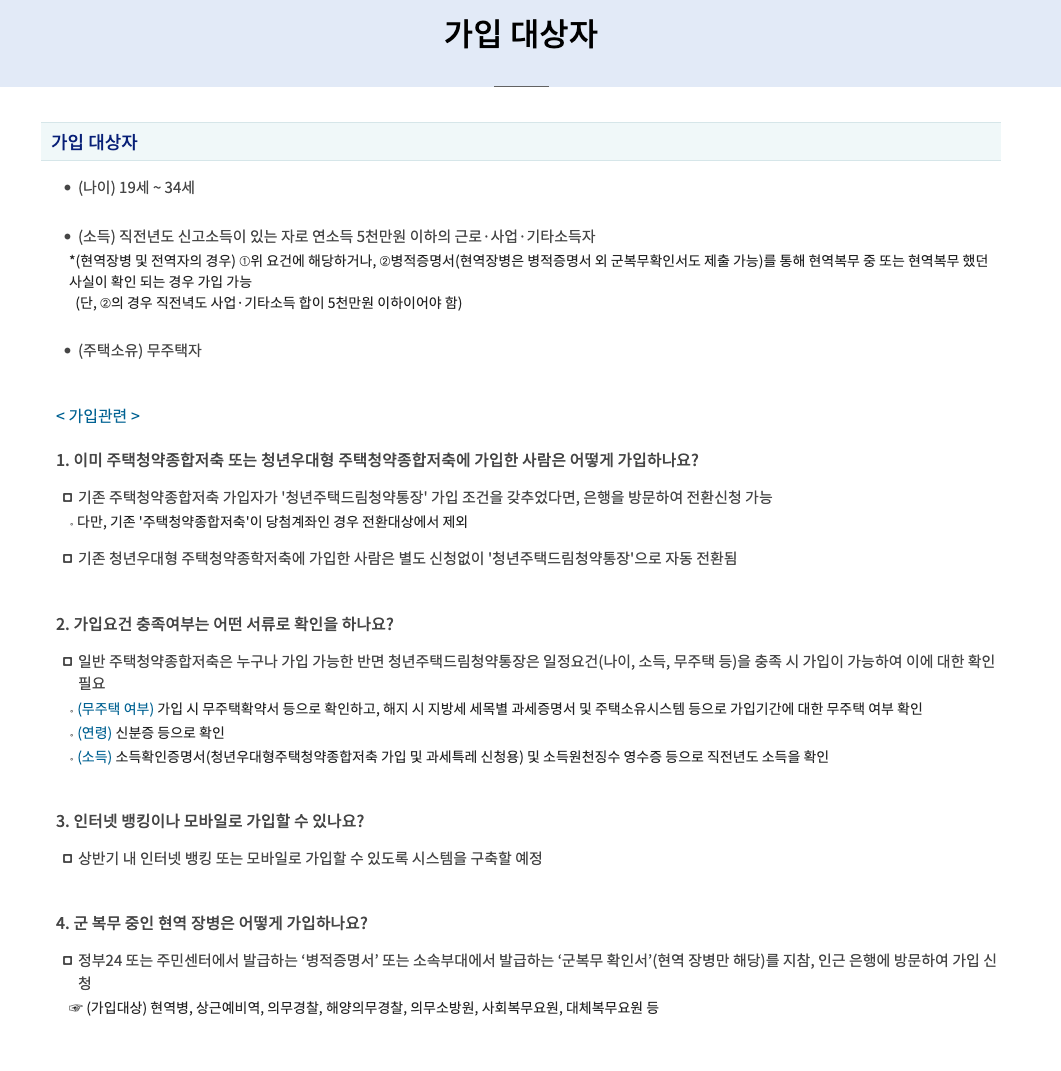 | 가입가능연령 | 제한 없음 | 19세 ~ 34세 | 19세 ~ 34세 |